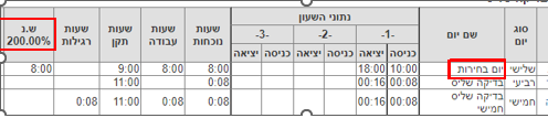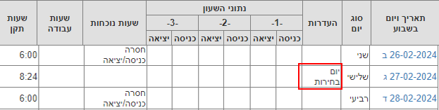 וכך זה נראה לגבי סיבת העדרות בשם “יום בחירות”: