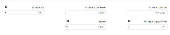 ג. בשדה “שם סיבת העדרות” יש לרשום את השם של סיבת ההעדרות, למשל – יום בחירות. כמו כן, יש למלא את השדה “מספר סיבת העדרות”. שאר השדות יש להשאיר כפי שהם.