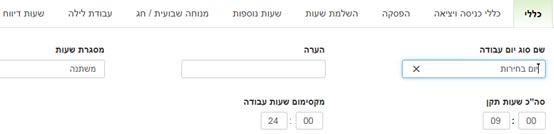 ג. בשדה “שם סוג יום עבודה” יש לרשום את השם של סוג היום, למשל – יום בחירות. כמו כן, יש למלא את שאר השדות במסך בהתאם לצורך.