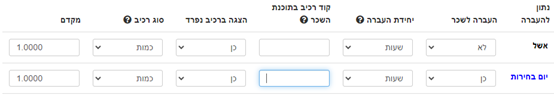 ב. בשורה של סיבת ההעדרות (למשל יום בחירות) – בשדה “העברה לשכר” נבחר “כן”, בשדה “יחידת העברה” יש לבחור את השורה המתאימה (להעביר כשעות / ימים וכו’), בשדה “קוד רכיב בתוכנת השכר” יש לרשום את הקוד המתאים של סיבת ההעדרות כפי שקיים בתוכנת השכר.